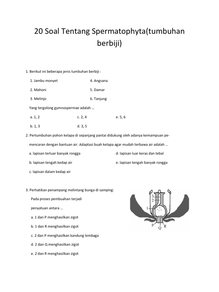 Soal Dan Pembahasan Gymnospermae Dan Angiospermae Essay Soal Sridianti Com